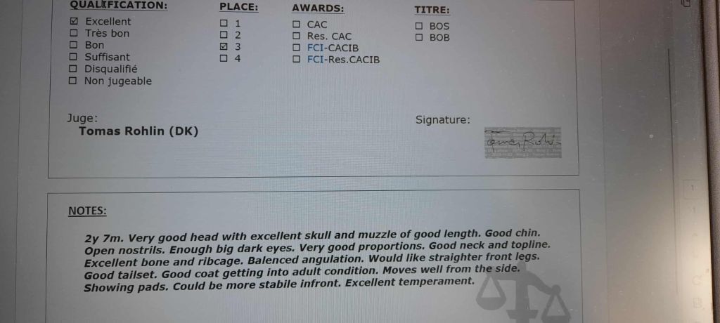 1er excellent, CACIB Jr, BOB Junior